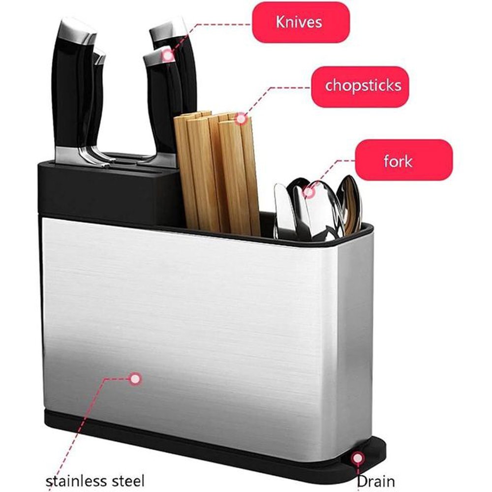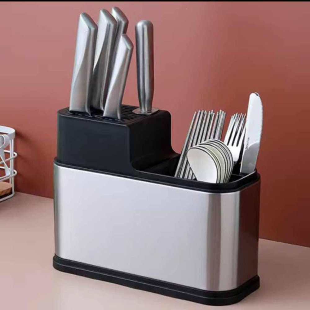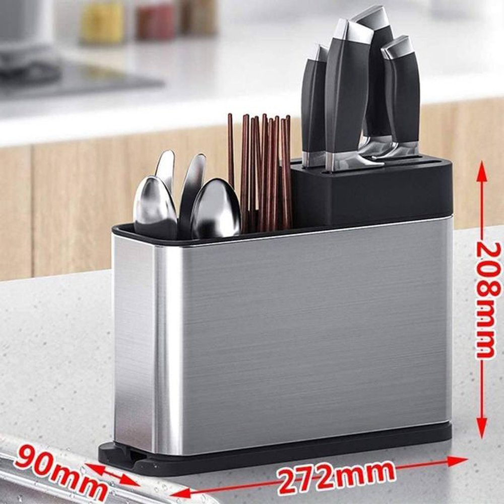 تصميم عملي من الاستانلس الفاخر لتنظيم المعالق والسكاكين معًا، يحافظ على أدواتك نظيفة وجافة.