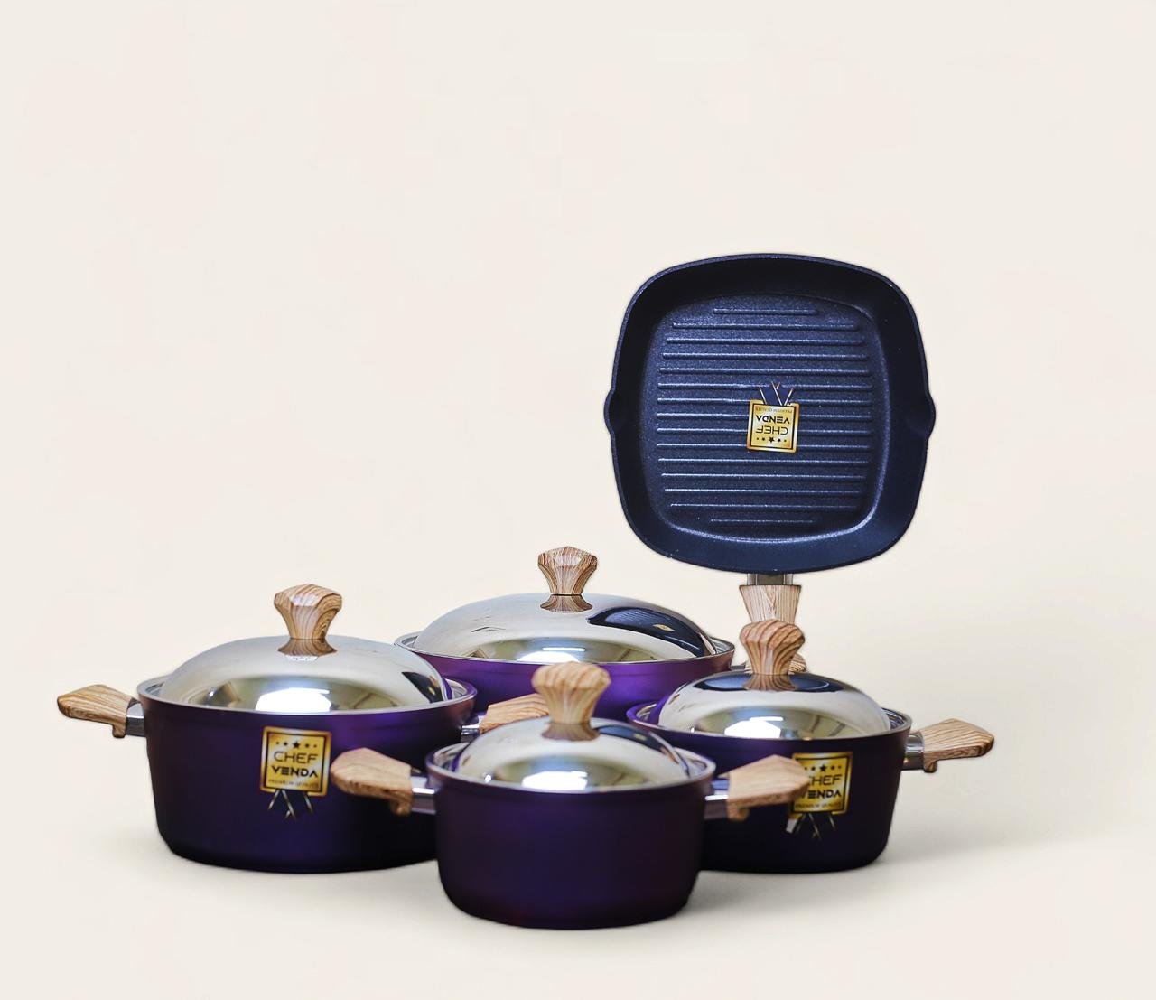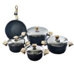 طقم حلل فاخر بتصميم مدور أنيق، مصنوع من خامات عالية الجودة لتوزيع مثالي للحرارة وحفظ النكهة، يحتوي على جميع الأحجام التي تلبي احتياجات مطبخك.