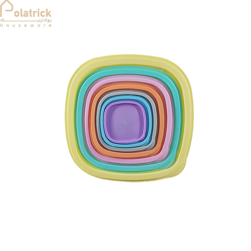 طقم من 7 علب تلاجة بأحجام متنوعة، للحفاظ على الأطعمة وتنظيم الثلاجة.