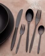 طقم معالق أنيق ومتين مطلي بالتيتانيوم، مقاوم للصدأ ويوفر لمسة راقية على مائدتك.