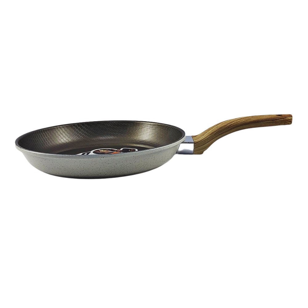 مقلاة بتصميم كلاسيكي مع يد خشبية مريحة، مثالية للطهي اليومي.
