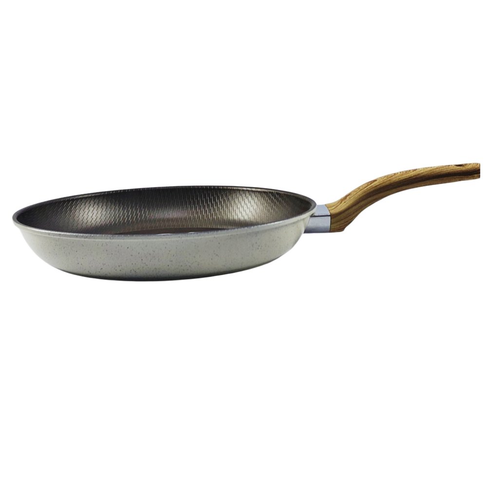مقلاة بتصميم كلاسيكي مع يد خشبية مريحة، مثالية للطهي اليومي.